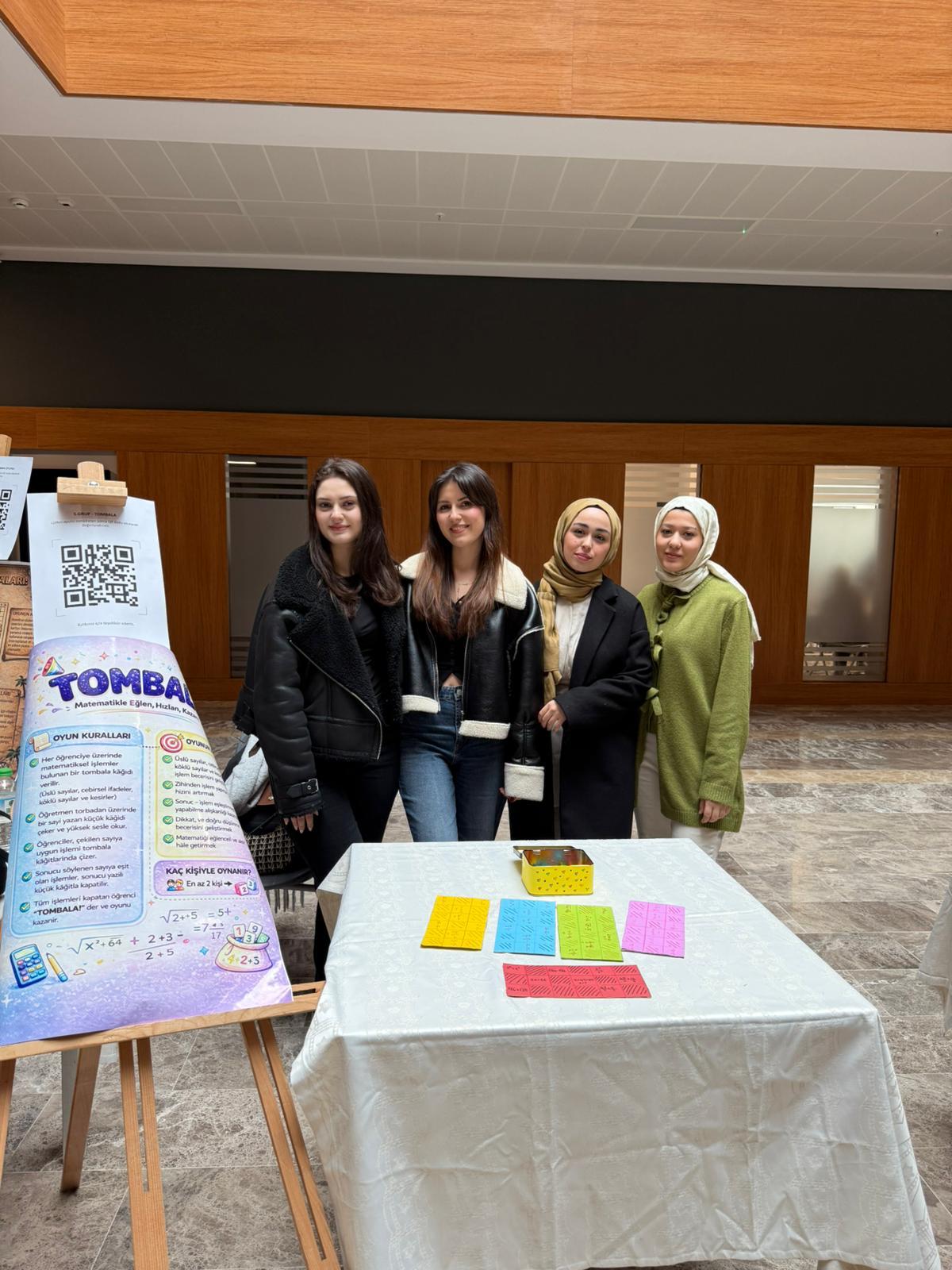 Matematik ve Fen Bilimleri Eğitimi Bölümü tarafından, Dr. Öğr. Üyesi Eda Nur Güner’in yürüttüğü “Oyunla Matematik Eğitimi” dersi kapsamında öğrencilerimizin dönem boyunca geliştirdiği ürünlerin yer aldığı sergi, 30 Aralık 2025 tarihinde 10.00–17.00 saatleri arasında D Blok Zemin Kat Fuaye Alanı’nda gerçekleştirildi. Sergide, oyun temelli matematik öğretimine yönelik öğrenciler tarafından geliştirilen öğretim materyalleri ve etkinlik örnekleri öğretim üyeleri ve öğrenciler ile buluştu. Etkinlik boyunca öğrencilerin ürünleri incelendi, oyunların kullanım amaçları ve öğretim sürecine sağlayacağı katkılar hakkında bilgi paylaşıldı.